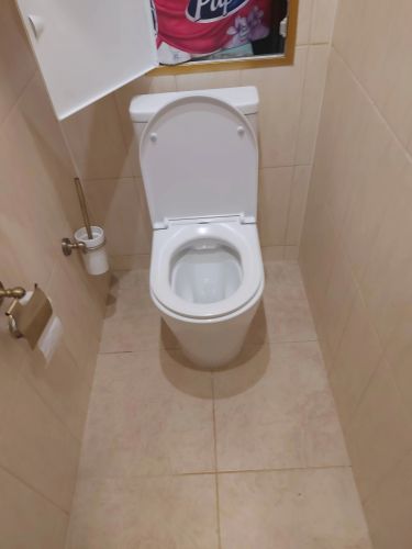 Снимем старый унитаз, установим и закрепим новый. Подсоединим его к канализации и обработаем герметиком. Работу выполним за 2–2,5 часа. Будем перекрывать воду.